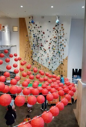 大人も楽しめる、高さ7.5mの本格的クライミングウォールです。